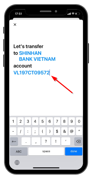 : Sau khi đã sao chép xong số tài khoản học sinh/sinh viên mở ứng dụng của ngân hàng, tại đây tiến hành dán số tài khoản vừa sao chép ở VL4U vào số tài khoản trong